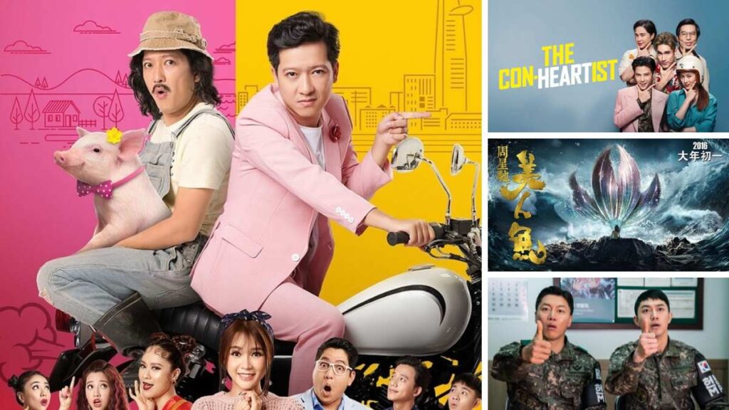 - Phim hài Trung Quốc: pha trộn giữa hành động và châm biếm xã hội, như Thần Bài, Tân Vua Hài Kịch.